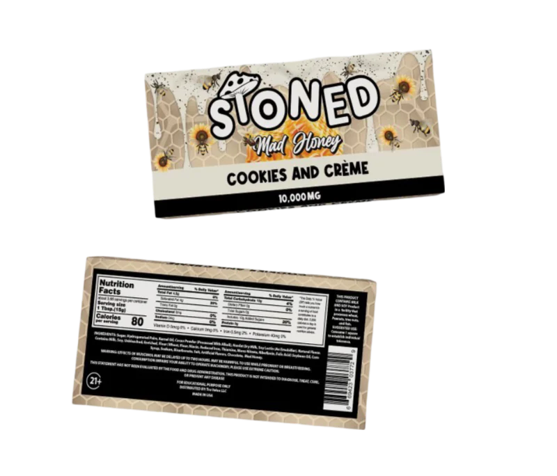 Mad Honey – Cookies and Cream Chocolate blends authentic wild mad honey with smooth milk chocolate and crunchy cookie pieces. This premium fusion creates a rich, creamy treat designed for adults who appreciate bold flavor and high-quality ingredients. mad honey gummies effects